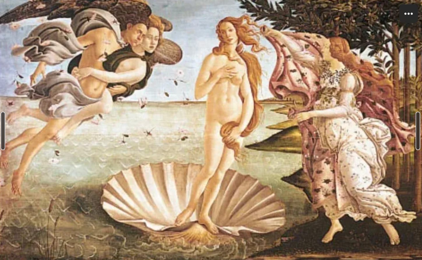 Take The Birth of Venus by Sandro Botticelli. Venus’s idealized body (hairless, youthful, flawless) reflects society’s demand for an impossible blend of purity and desirability. There’s little room here for the real, mature bodies we actually inhabit: bodies with pubic hair, cellulite, stretch marks, and menstrual blood. This image, along with countless others like it, has shaped Western ideals of femininity for centuries.
